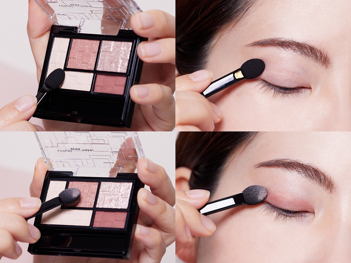 為了滿足女孩們喜歡畫下眼影的風潮,KATE利用2色上眼影+2色下眼影組合而成的「巧色特調眼影盒」,上下眼影同色系,可以幫助擴大眼睛的縱橫幅,簡單好畫不失手,整體眼妝的色調一致,擺脫髒髒下眼妝或銳利不自然妝感,4步驟就能自然放大眼睛比例,無論是哪種眼型通通必收!