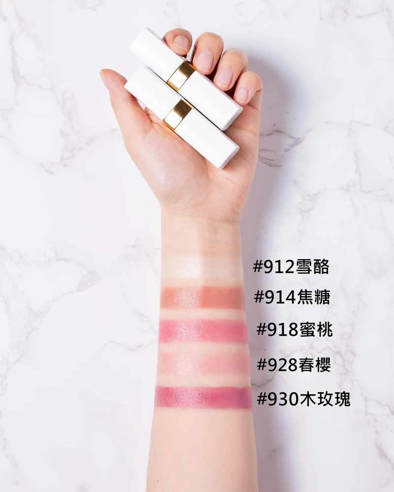 高級感十足的#918蜜桃,黃皮不能錯過。超顯嫩的嫩粉玫瑰色,讓雙唇就像套了濾鏡般提亮又粉嫩,可塩可甜、活力100%,日常妝容靠它就足夠。