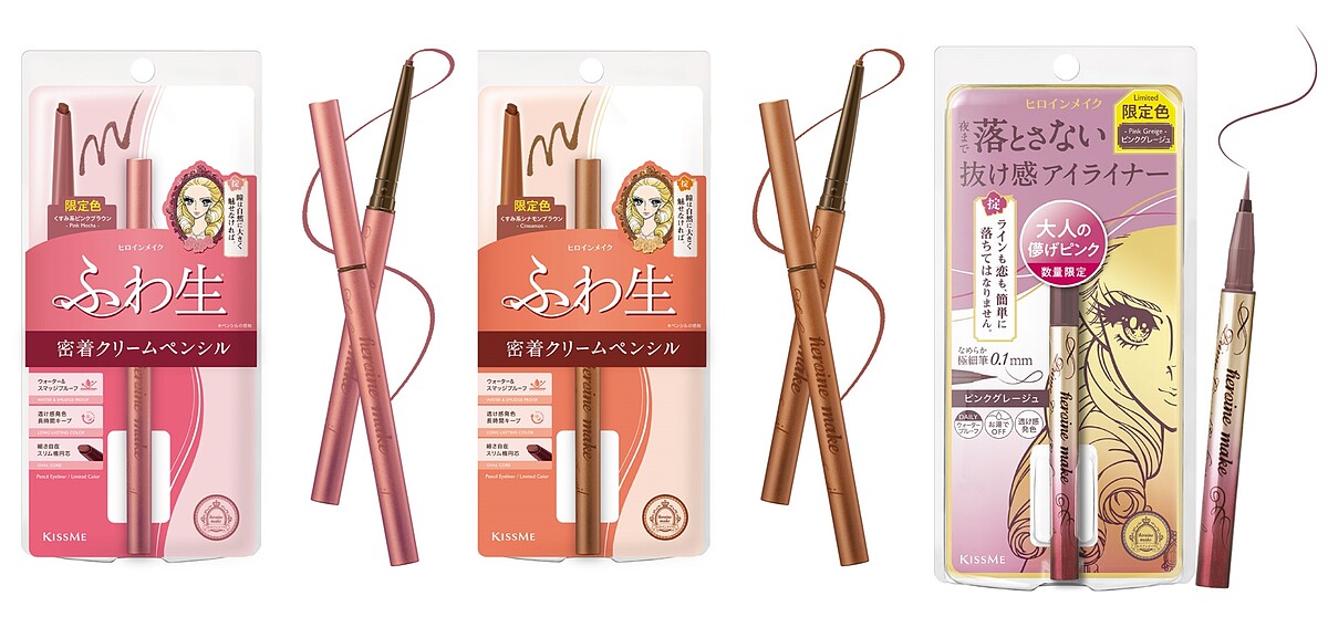 今年春夏KISSME將三個熱賣系列推出限定新色,其中就包含兩款眼線產品:勾勒美瞳柔滑眼線膠筆、超!持久極細抗暈眼線液筆。延續近年彩妝趨勢,全新色彩皆以符合亞洲人皮膚與瞳孔的棕色調為基礎變化,顏色上能為風格增添變化與魅力,又不至於難駕馭。
