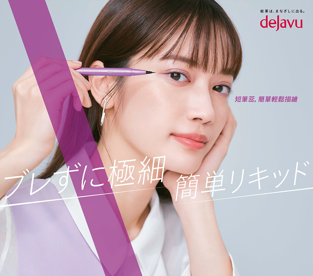希望能讓消費者畫出更穩定的線條,dejavu開發出眼妝市場少見5mm的超短筆蕊, 實現輕鬆好畫的筆觸,更兼顧細緻穩定的線條。縮短的筆蕊在下筆瞬間就能感受到平穩,此外,0.1mm的筆尖設計,不僅可以深入畫到眼瞼、眼角這種刁鑽角度的部位,也使眼尾的勾勒更加容易不失手。