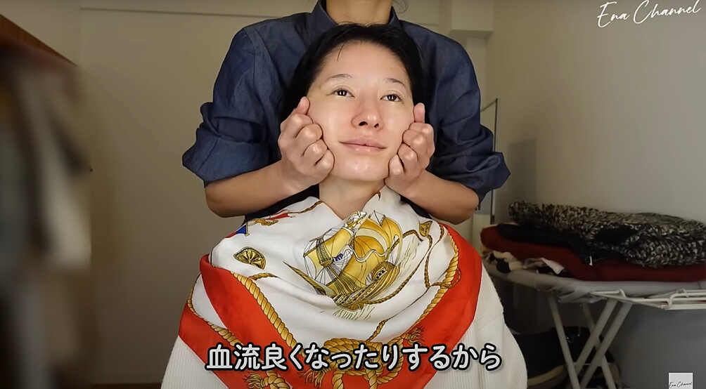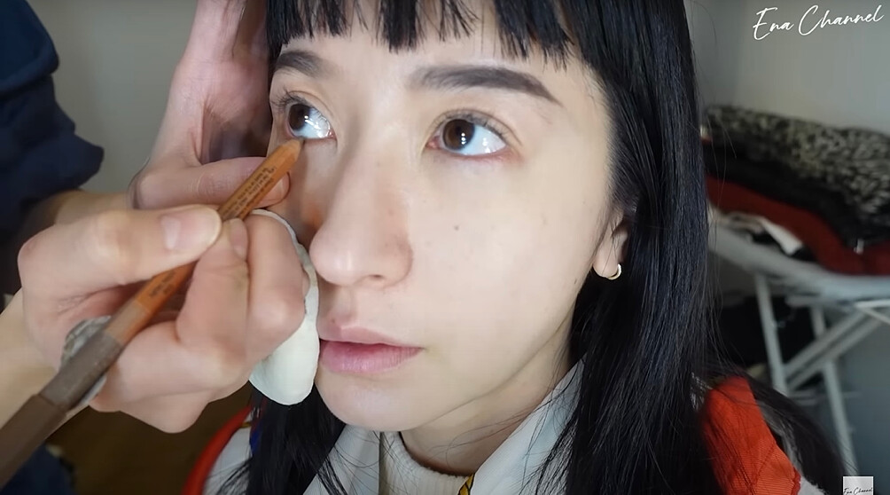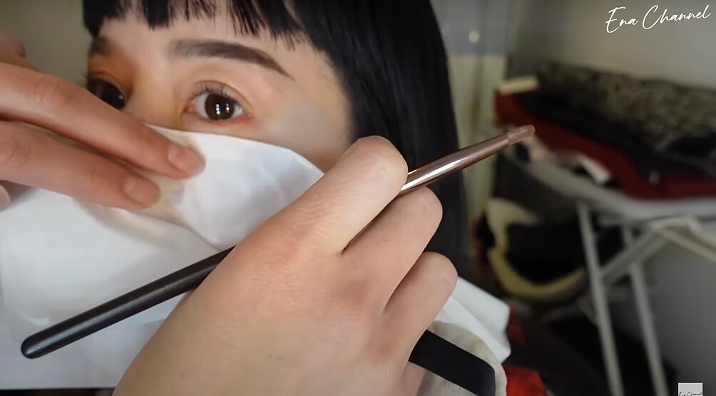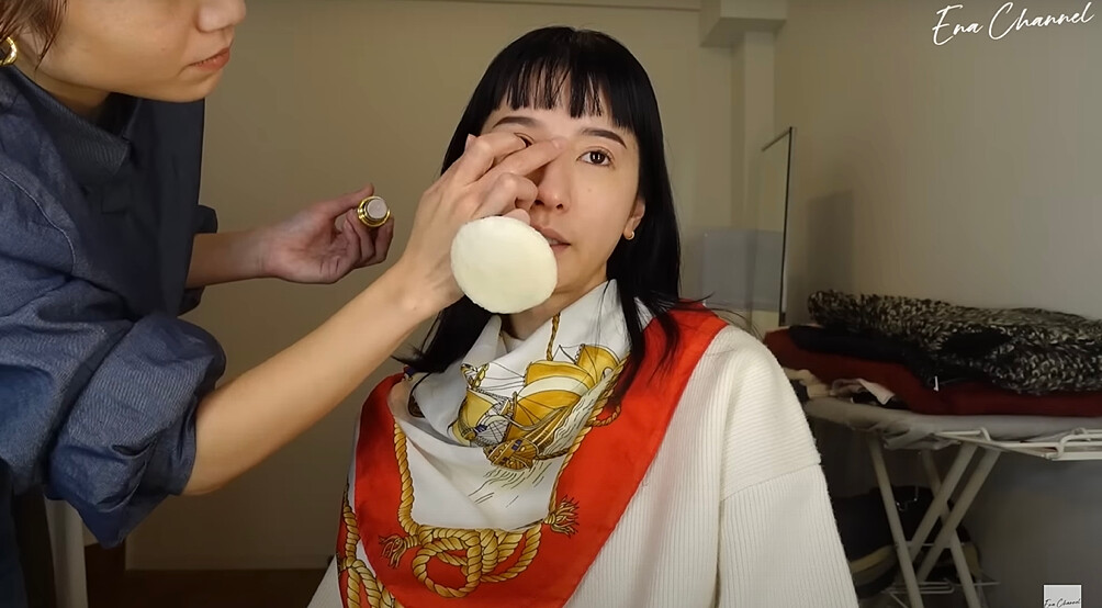彩妝師在上底妝前會先擦保養品搭配按摩臉部消水腫,比起純霧面或光澤感底妝,惠奈比較偏自然的妝感,利用遮瑕產品稍微修飾後呈現好膚質,搭配乾淨俐落的自然眉毛,就是她的底妝重點!