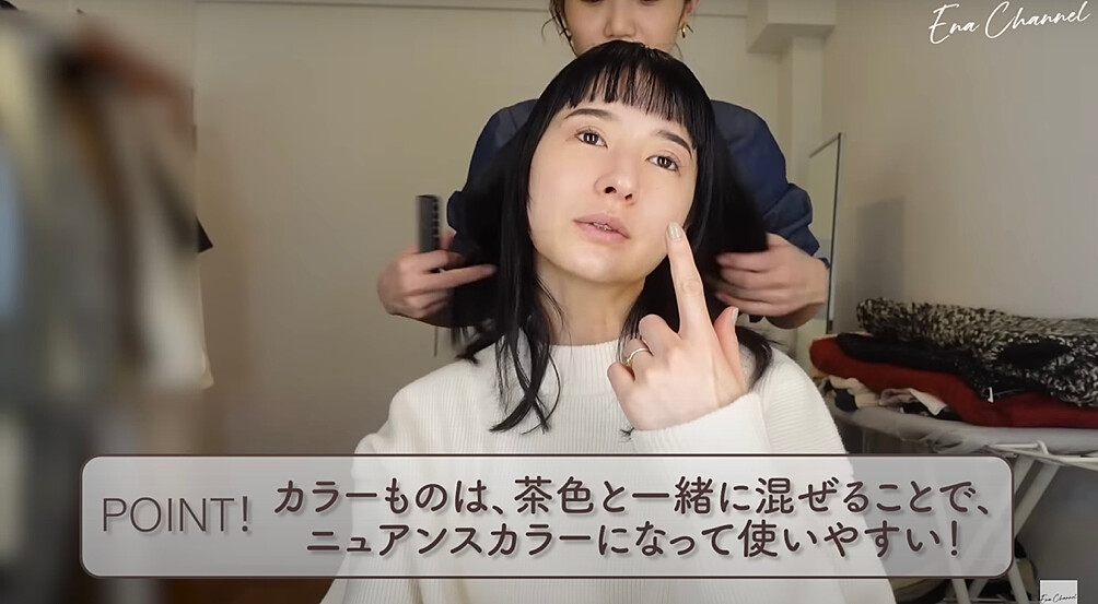 惠奈的彩妝師也提到,任何顏色跟咖啡大地色混著一起用就會給人有不同的感覺,相互搭配後的發色與色澤也比較可以和膚色融合,看起來更自然好看!