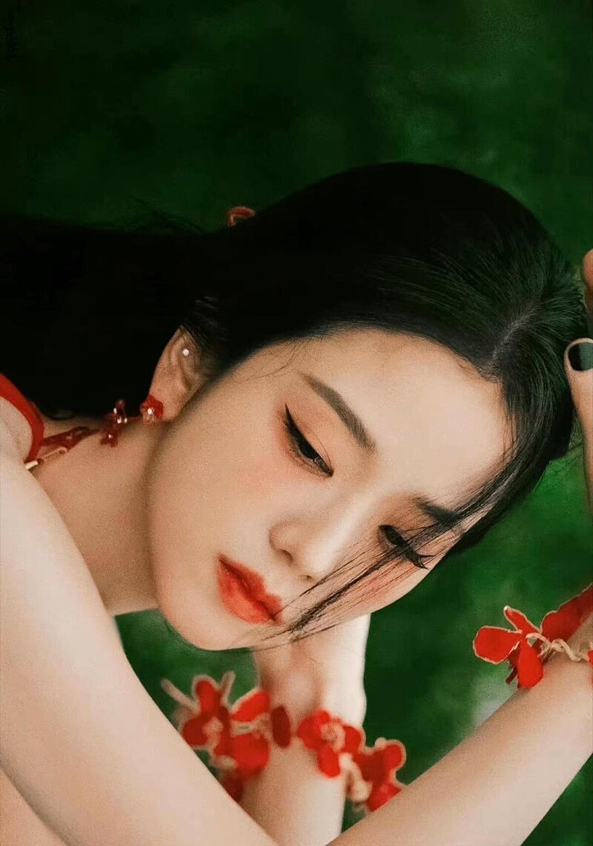 Jisoo Solo 妝容LOOK 1|紅色系花瓣妝