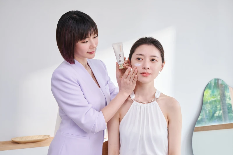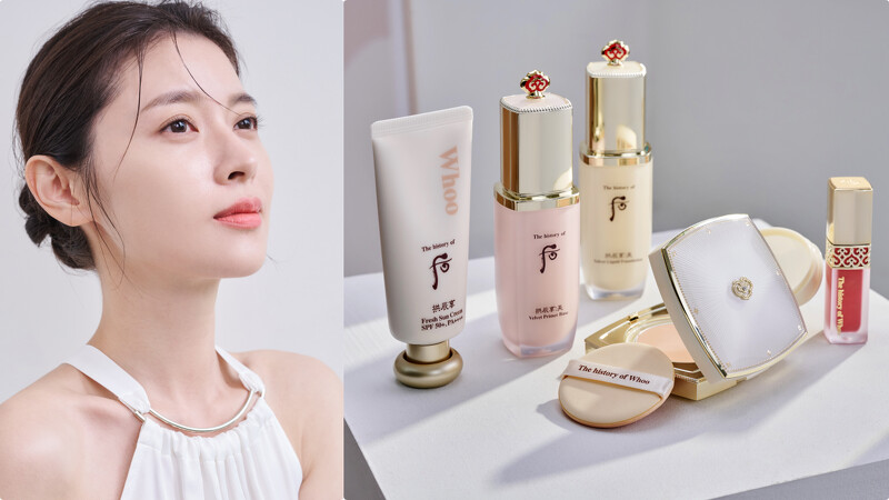 打造韓劇女主妝,明星御用彩妝師游絲棋老師四招揭密--Whoo后全新「拱辰享絲絨柔霧水粉餅」收就對了!妝前養膚必用輕盈修護防曬凝乳+絲絨妝前露,原生美肌完美持妝到深夜~