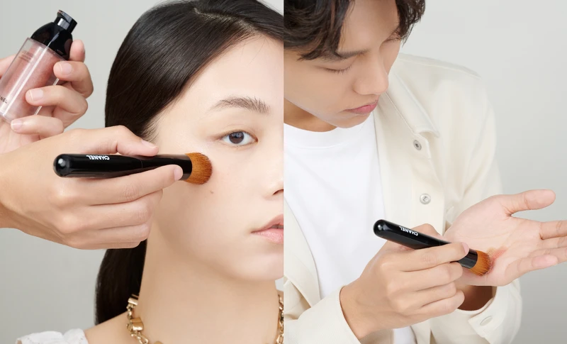 建議可用香奈兒經典#101刷沾取「原生美肌微滴水粉底」,全臉均勻薄薄打上第一層宛若原生美肌的底妝後,接著,用「原生美肌微滴水粉底」所附的小粉刷尖端,輕輕掃過鼻翼、眼周,就能讓妝感更加平滑服貼且精緻。
