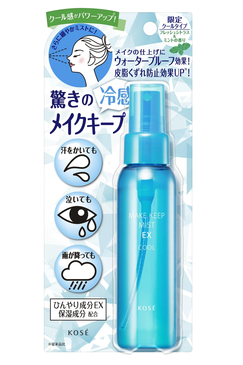 每年夏天,在日本和台灣都大缺貨的美顏定格持粧噴霧,今夏也推出夏季限定款-涼感冷檸香瓶,於POYA寶雅通路獨家限定販售。添加冰沁涼感成分EX,能在定粧時立即感受清爽感。防水控油功效,發揮令人驚豔的持粧效果,加上耐汗、耐皮脂、防水的彈力粧膜,能防止粧後的油光擴散及粧容暈染。使用時請先充分搖勻 雙層劑型10 次以上後再使用,於完粧後的肌膚並距離臉部約 15 公分左右,閉上眼‧唇後均勻噴於全臉。用後請不要觸摸肌膚,待其自然變乾即可。