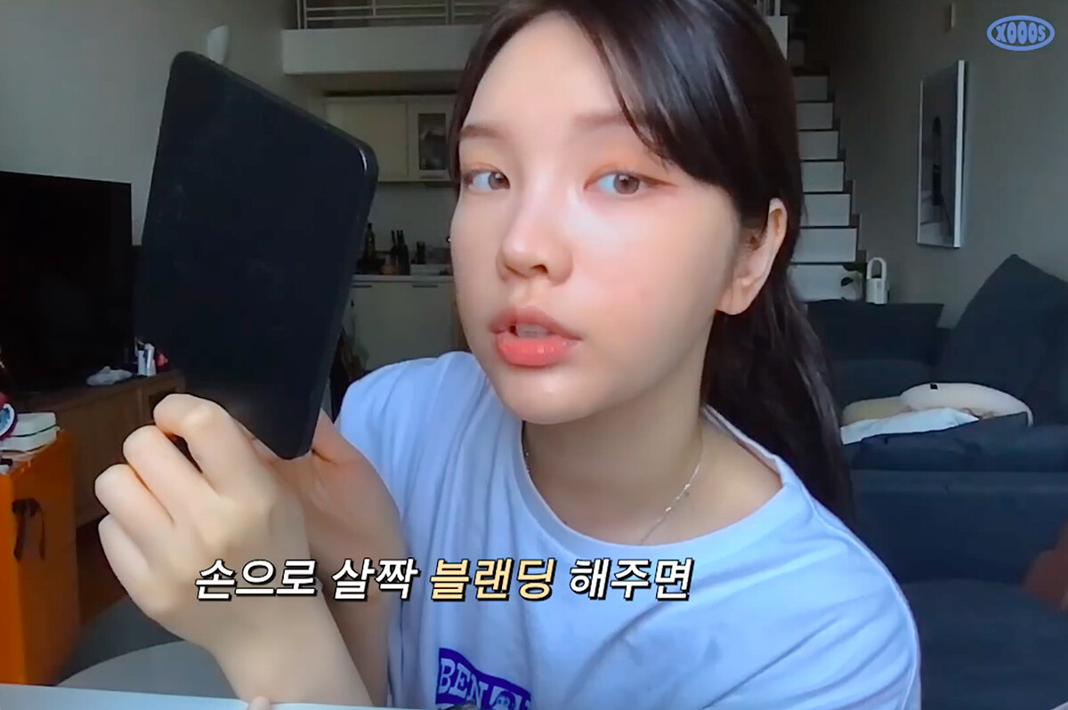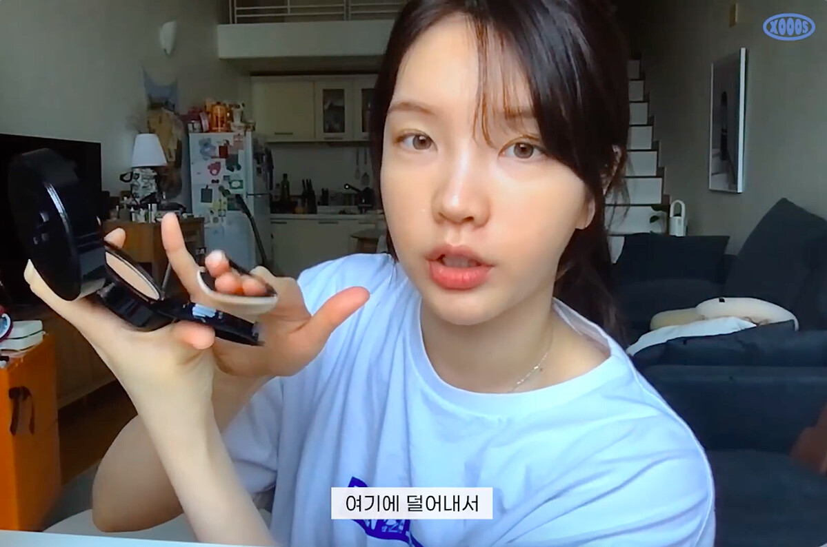 底妝方面他選用方便快速的氣墊粉餅,XOOOS說明:「沾取後一定要在蓋子上調節用量」,少量多次的輕上,才能確保妝容清透自然、不會過於厚重。