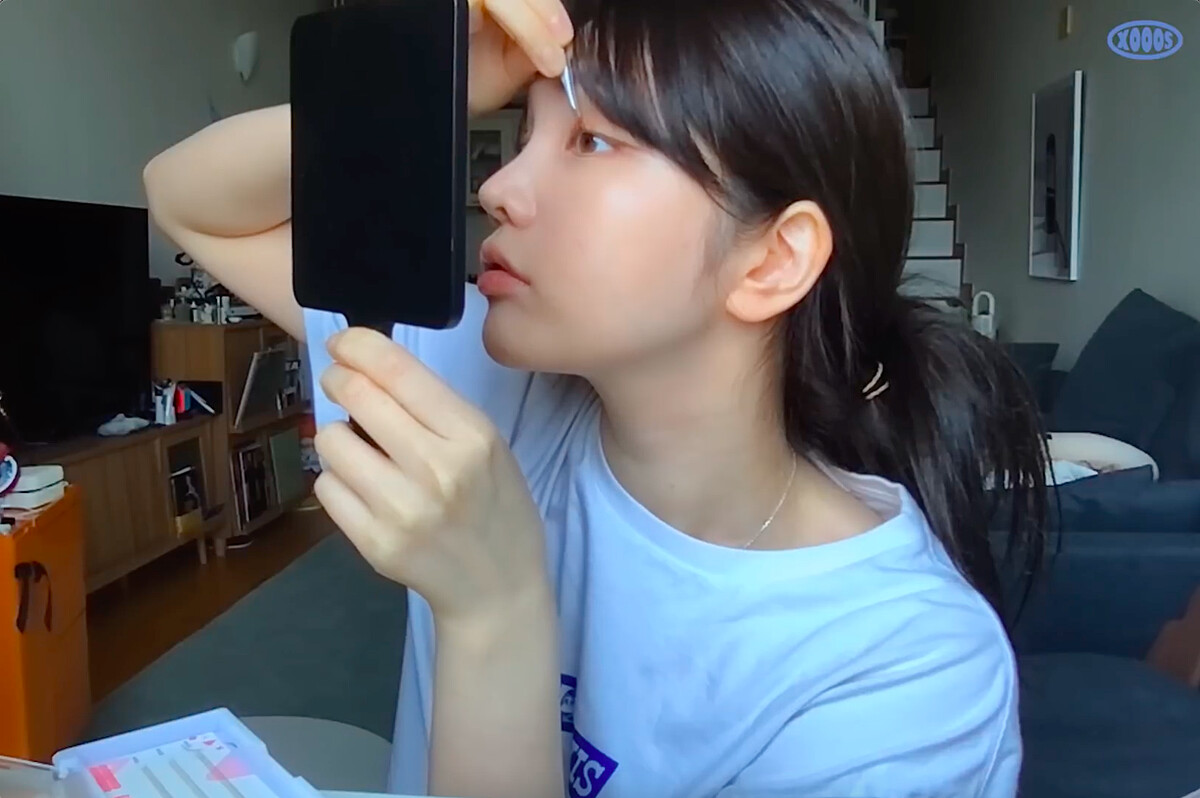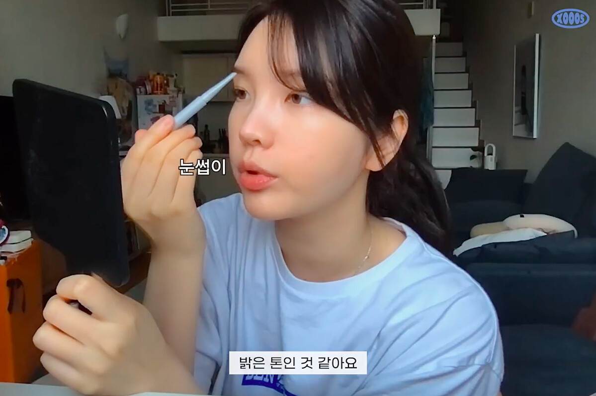 XOOOS提到自己會選擇比髮色再明亮一點的眉筆顏色,因為如果眉毛顏色過於強烈的話,會給人過於強勢的印象。運用眉筆輕輕描繪眉型,打造柔和自然的眉毛。