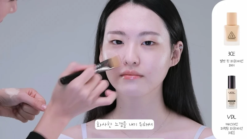步驟二:擦完防曬妝前乳,使用粉底平刷薄薄上一層粉底液,沾溼海綿均勻拍開,少量多次慢慢上底妝,有小瑕疵的地方再用遮瑕刷局部加強,讓底妝看起來乾淨自然!