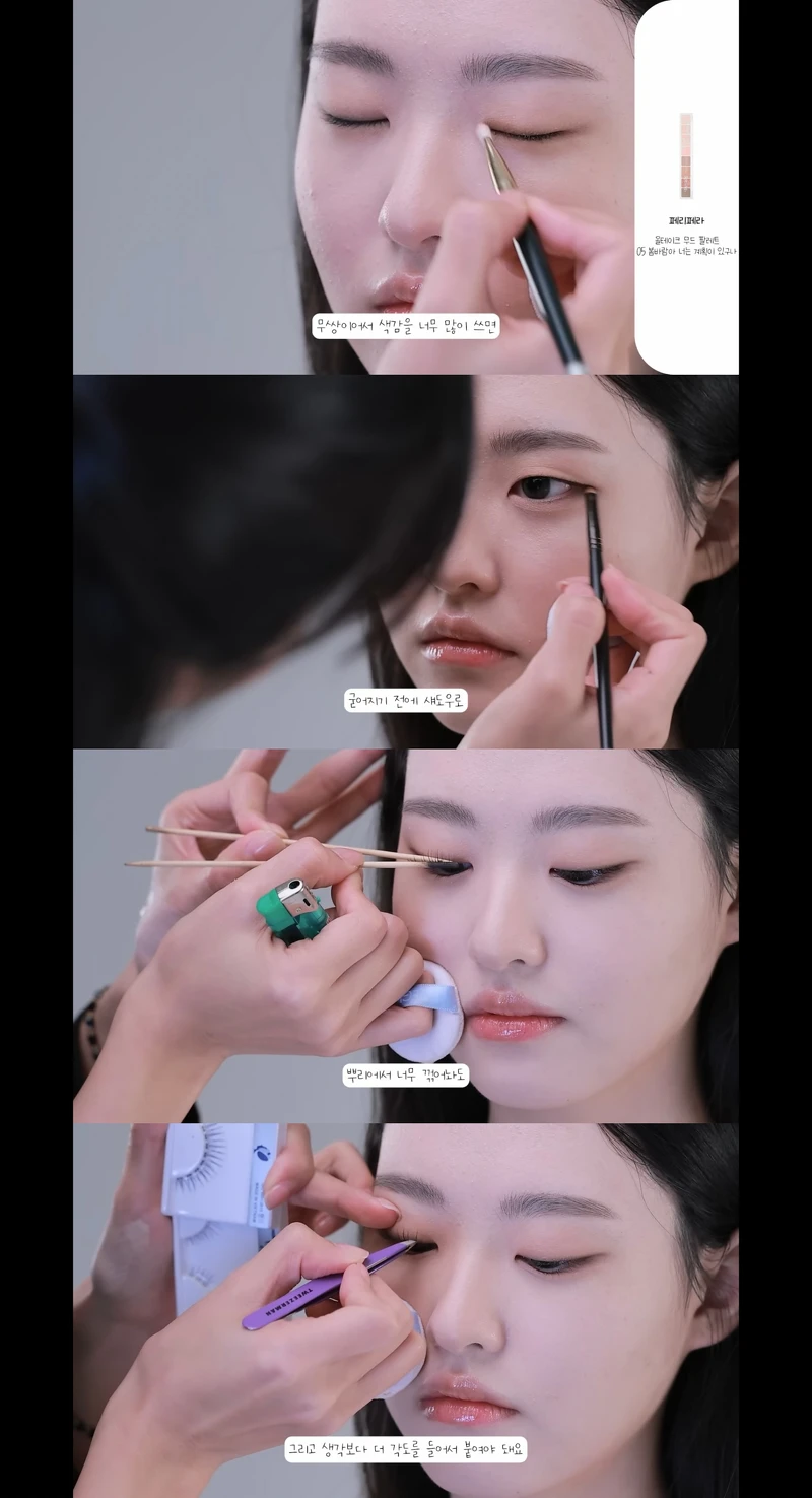 步驟七:千萬不要將整片假睫毛直接貼!適合單眼皮女生的睫毛感是眼頭與眼尾輕、眼中加重加厚,這樣貼的方式可以讓眼妝更輕盈有層次感!最後再用睫毛膏刷過一次,讓真假睫毛更融合一體自然。