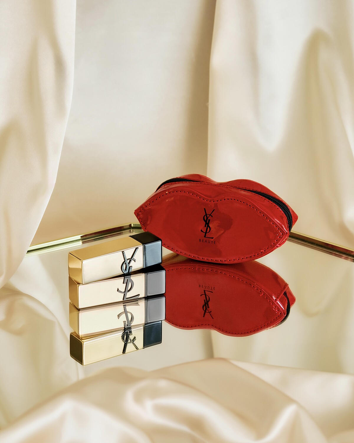 保留了經典的金色鏡面包裝,只因「金色鏡面」是聖羅蘭先生對奢華緞面唇膏的唯一堅持。1978年,「著我裝者,著我妝」的理念讓聖羅蘭先生跨進美妝界,並以最能賦予女性多樣風貌的唇膏做為YSL Beauty的首發,細膩如他更親自參與包裝設計,選擇了摯愛的金色烘托出奢華感、採用鏡面設計讓女人可以隨時補妝、不再為了補妝躲躲藏藏,即使只是小小的唇膏,卻能從設計細節延續「菸管褲」和「The NUDE Look」的時尚理念,讓女人更自由、更無拘束。全新升級的奢華緞面唇膏在金色鏡面上浮刻了靜謐漆黑的立體LOGO,平衡金色的極致高調,立即展現高級氛圍。