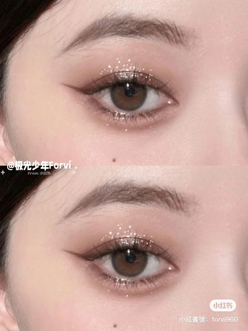 隨著輕煙燻回歸到妝容潮流中,今年秋冬也可以運用大地色系的深淺做出輕甜煙燻妝容,比起以黑色為主的煙燻妝,同樣有存在感,但更具透明感且更好駕馭。可先用米色系做大面積打底,接著漸層加深雙眼皮摺、眼尾三角區域,最後也可以選用深棕色系的眼影疊搭棕色系眼線,運用不同的棕色系在眼妝上做出層次感。
