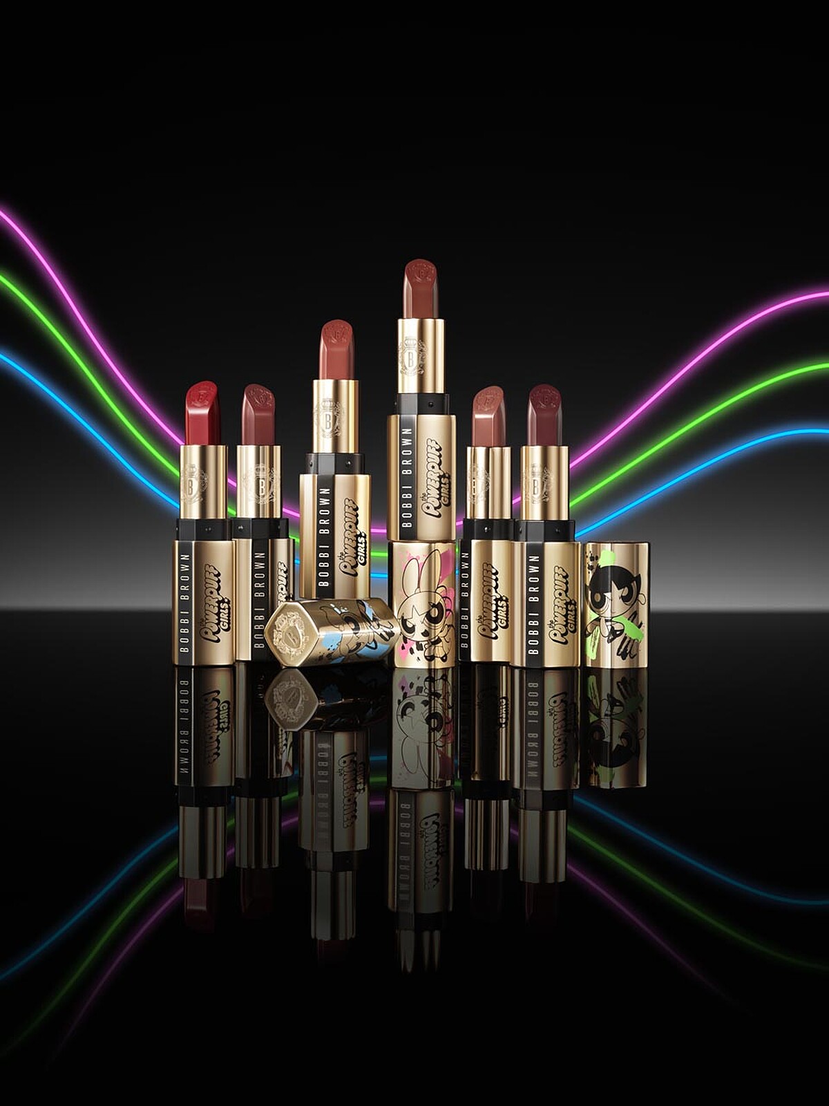 顯色又保濕的金緻緞光唇膏換上由三位飛天小女警擔綱的新裝。其中包括經典色號:64 #AfternoonTea 琥珀奶茶、04 #Claret 赤茶酒紅、808 #Ruby 赤茶紅棕,除此之外更替三個角色打造了全新的限量新色:色 140 #Buoyant Bubbles 活力泡泡、621 #Berry Buttercup 率性毛毛 與828 #Brick Blossom 聰明花花,兩組不同色號、相同角色的包裝搭在一起,色選超速配。
