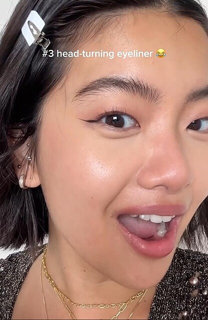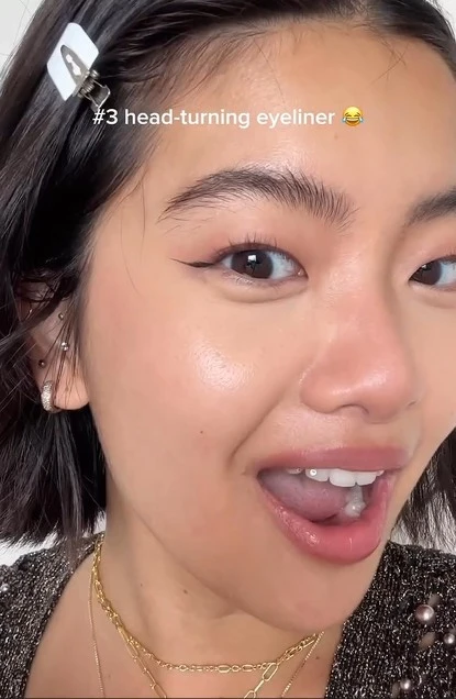 如果你已經用上面的方法填滿了眼睛中間的區域,就該畫眼線尾了,這個技巧也是在小紅書上很紅的滑走眼線,將眼線筆畫在眼角處,然後將頭轉向相反的方向,但後續還是要將線條補齊,建議還是多練習才能迅速完成完美眼線。