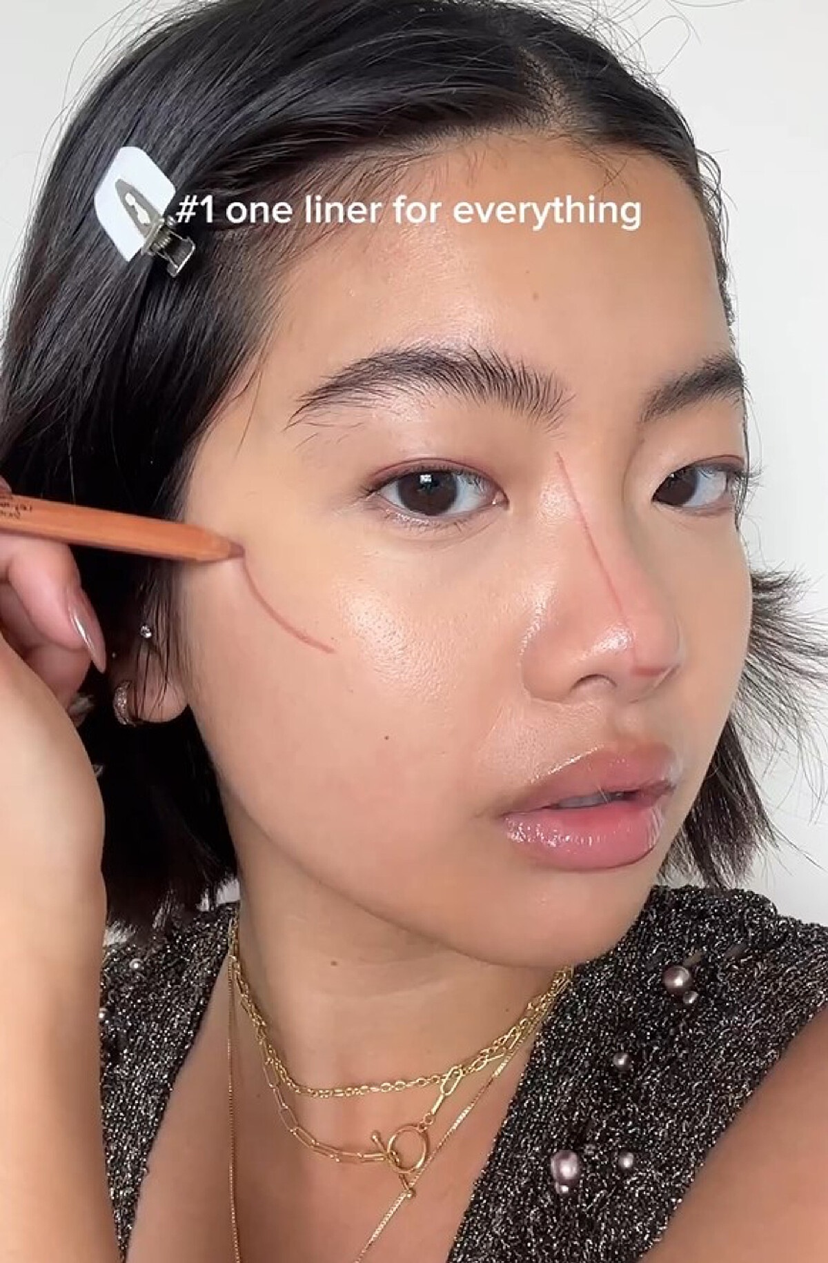 你只需擁有一支裸色眼線筆or唇線筆又或是各式各樣的筆狀展品,就可以減少化妝時間!將裸色眼線筆塗抹在鼻樑、顴骨、眼瞼和唇線處,並用手指輕輕暈開,就可以輕鬆地打造臉部輪廓和陰影。
