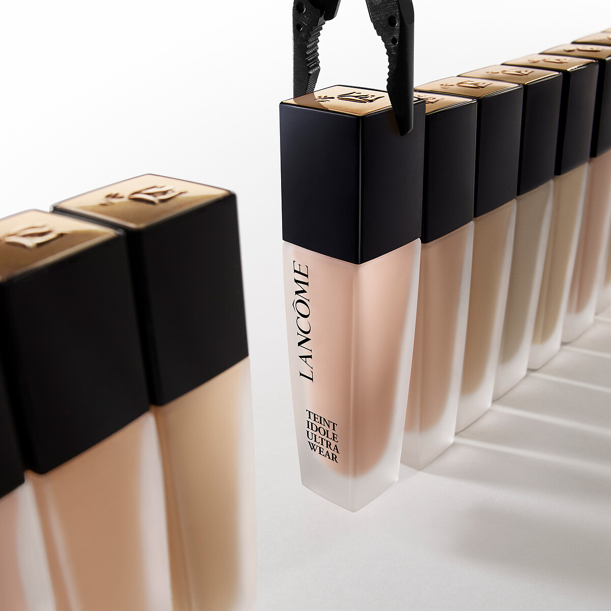 設計師水燦光影粉底瓶身延續Giorgio Armani底妝圓管斜切黑色瓶蓋,腰身鑲嵌普魯士藍GA logo,一共推出10色,分別為:#1、#1.5、#1.75、#2、#2.5、#2.75、#3、#4、#5、#7。