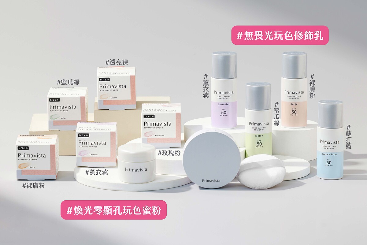Primavista映美煥采底妝本次新推出的鎖水膜力妝前修飾乳,還可以搭配粉體輕透的煥光零顯孔玩色蜜粉,打造晶透隱匿毛孔的柔滑冬季美肌;夏天能選用炙夏不敗,SPF50的無畏光玩色修飾乳,打造在艷陽下也絕對不脫妝的鐵壁極緻底妝。不同季節、不同妝效與持妝需求,Primavista映美煥采底妝系列都能為你打造宛如原生肌般的精緻細膩感。產品詳細介紹可搜尋「Primavista」。