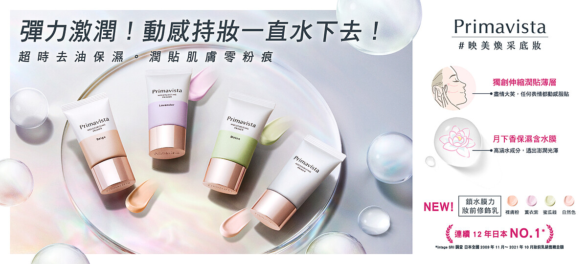 Primavista鎖水膜力妝前修飾乳針對不同肌膚需要,打造玩美四色,除了先前上市即大受好評的自然色,能夠溫柔輕盈的增添紅潤好氣色,本次更全新推出超細緻三色:裸膚粉修飾膚色不均,打造無瑕精緻感;蜜瓜綠針對泛紅肌膚,給你乾淨白皙感;薰衣紫修飾蠟黃暗沉,自然提亮顯嫩白。想要打造不同質地的夢幻日雜清透妝感,四色全包就對了!