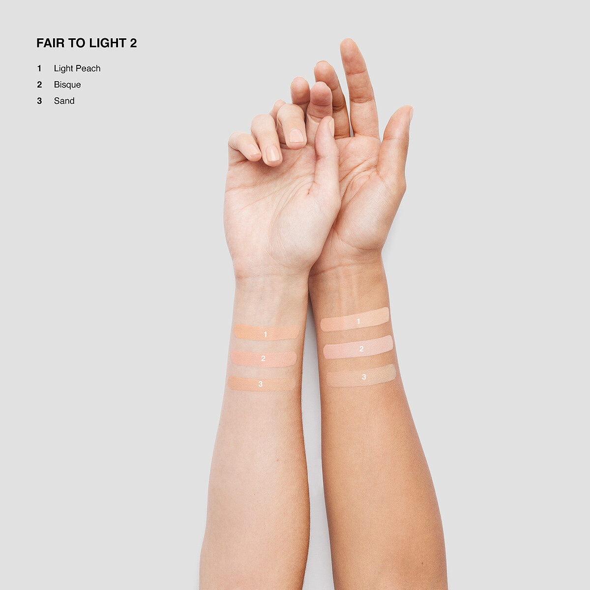 也根據遮瑕色號的不同分成兩盤可挑選,Fair to Light 1 的Warn Ivory遮瑕色更適合白皙膚色,Fair to Light 2的Sand則更適合自然健康肌。