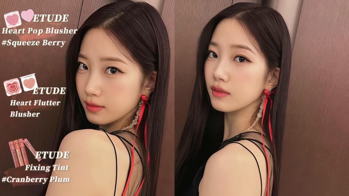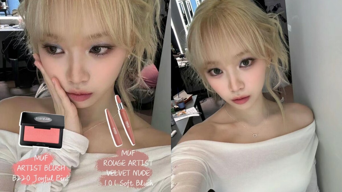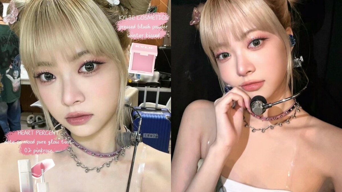 恩採的妝容都以冷粉色為主,以帶紫調的腮紅稍微提亮雙頰,再用玫瑰粉色的唇釉塗滿嘴唇,帶清冷感的蝴蝶妝容就完成了。