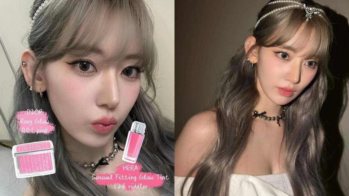 「小櫻花」宮脇咲良的珍珠妝容仙氣滿滿!Dadomi使用桃紅色的腮紅和唇釉增加整體氣色,讓乾淨的妝容更帶有血色感。