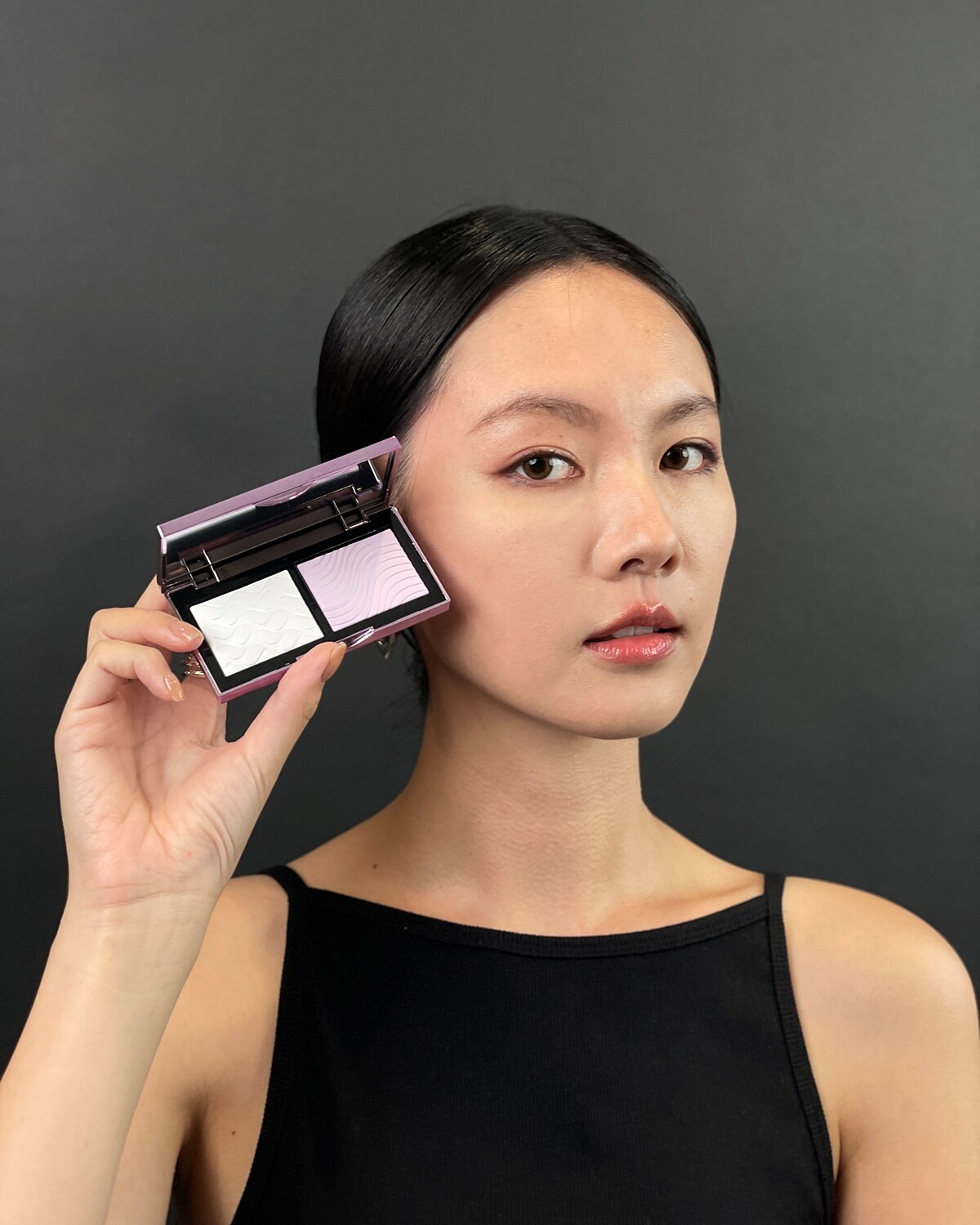 以親膚粉末為基底,輕柔貼合肌膚,並添加多重保濕成分,柔潤不乾燥,米白色珠光透出低調光感,展現波光粼粼的唯美妝效。也能作為局部打亮。