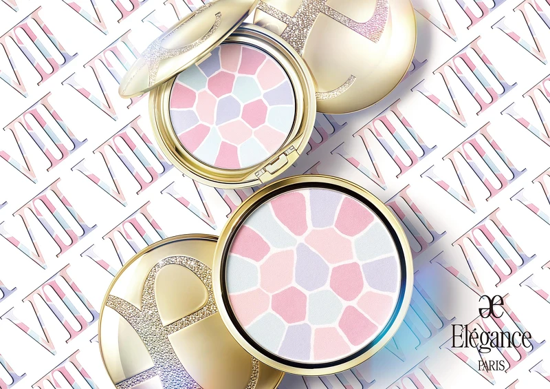 全新8號色主打日系透明感,運用兩種不同的粉紅色調粉體:玫瑰粉、淺粉紅,能襯托各種膚色並自然提亮且不反光,同時加入淺藍色系的粉體,運用其冷色調和暖色調的平衡。質地上採用防潑水性微粒粉體讓妝容長效持久,輕拍就能隱形毛孔;同時透明板狀粉體則讓妝效更輕盈、服貼。