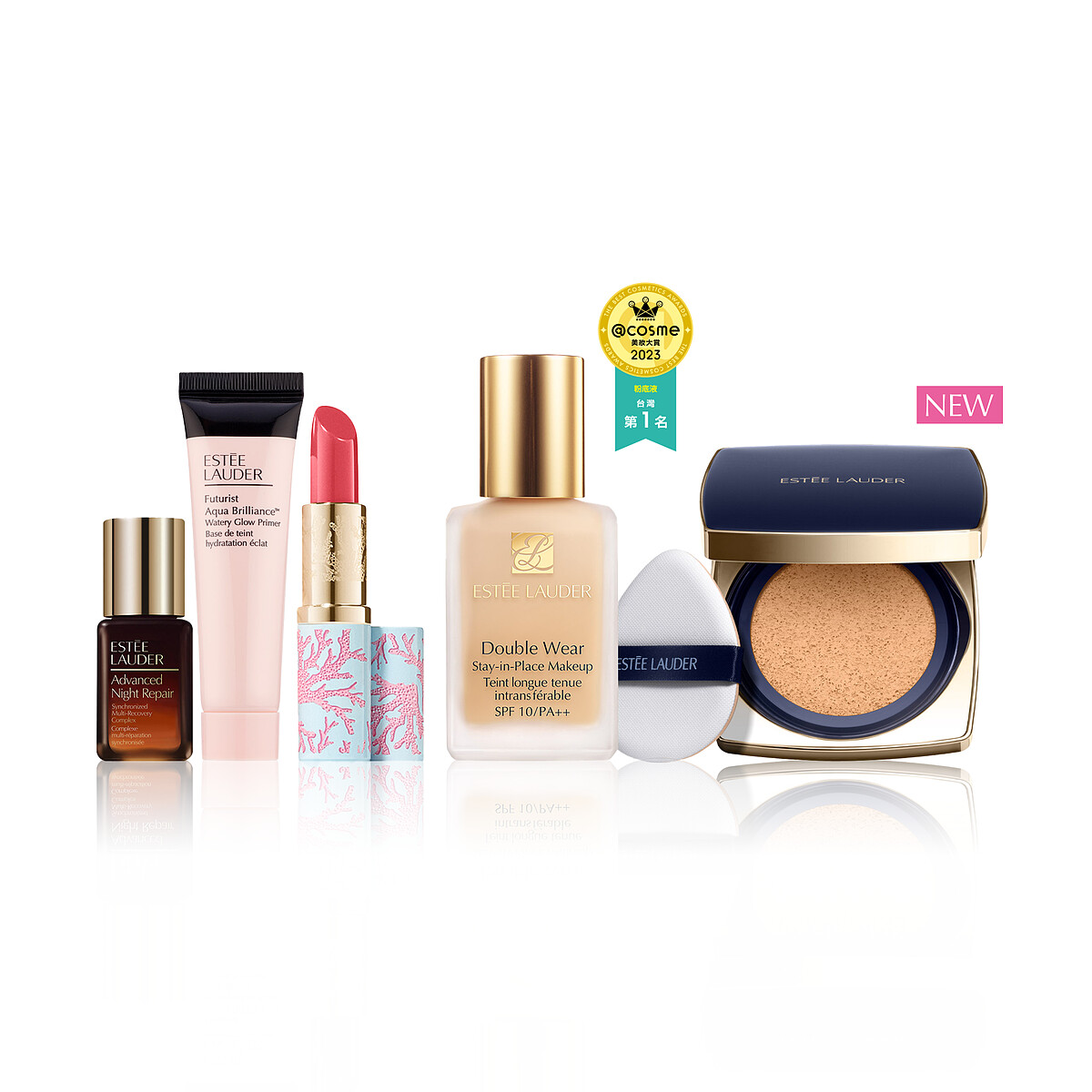 贈:絕對慾望奢華潤唇膏420玫瑰荔枝 2.8g+特潤超導全方位修護露7ML+粉保濕水啵啵妝前精華15ML,原價NT.7,263起、優惠價NT.4,450起。