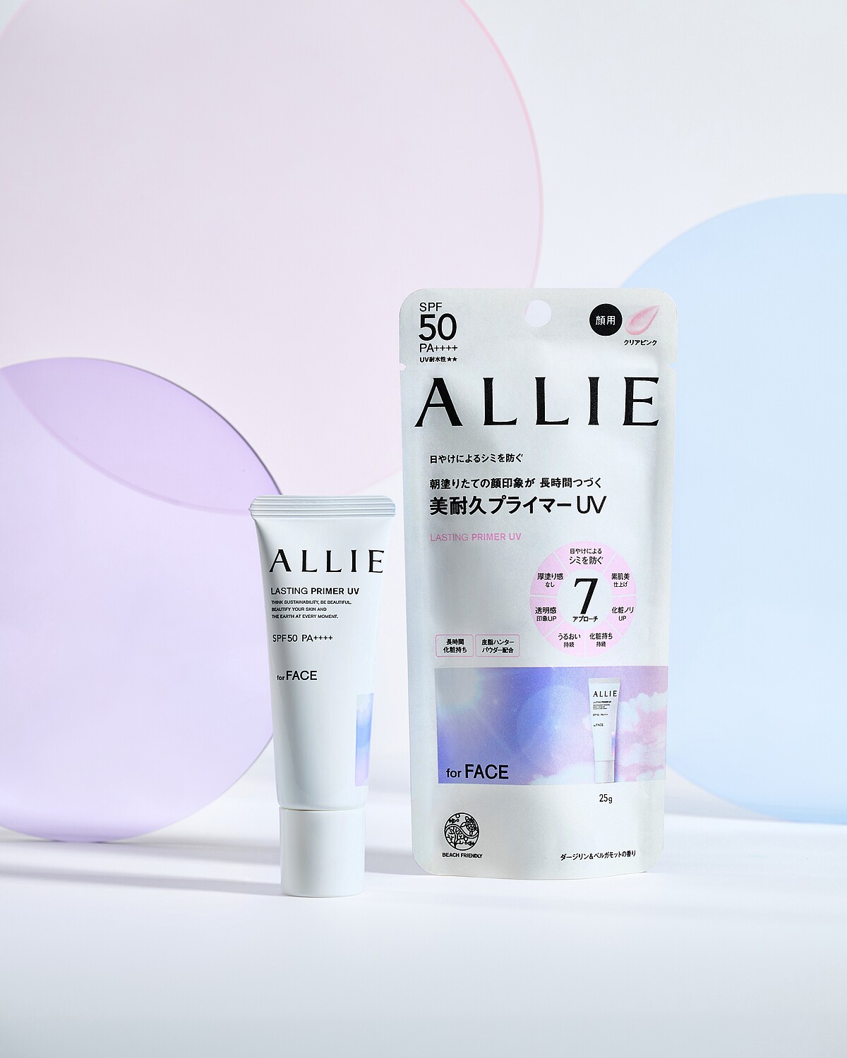 台灣的夏天又熱、又濕、又曬,防曬+粉底黏上加黏,每次上妝出門過不了多久就容易土石流⋯,ALLIE聽到大家的心聲!許光漢大推的 持采長豔UV高效防曬飾底乳 #7效妝前乳UV ,根本就是夏天防曬+完美底妝的救星!面對夏天超放肆的紫外線,#7效妝前乳UV 擁有 SPF50、PA++++超強防曬力,不怕曬黑、曬老,還能預防日曬形成的斑點;此外,清新的水凝乳質地非常好推勻,添加皮脂吸附粉末就算在夏天也能持續清爽零油光、零油膩感,65%水相成分還能預防乾燥起屑,並長時間保持潤澤感,後續上底妝更服貼,減少浮粉、卡粉的問題,在高溫夏日維持整天精緻完美妝容。令人更驚豔的是,還能直接用來補妝,即使疊擦上去也不厚重。