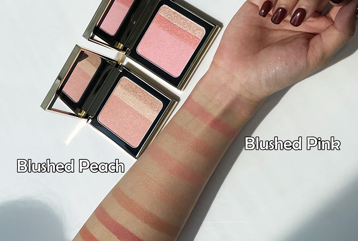 一盤融合絕美漸層三色,單擦或混刷都適合,一盤打造層次好氣色。細膩粉質中帶著細緻珠光,能讓雙頰一秒澎亮,打造立體五官。