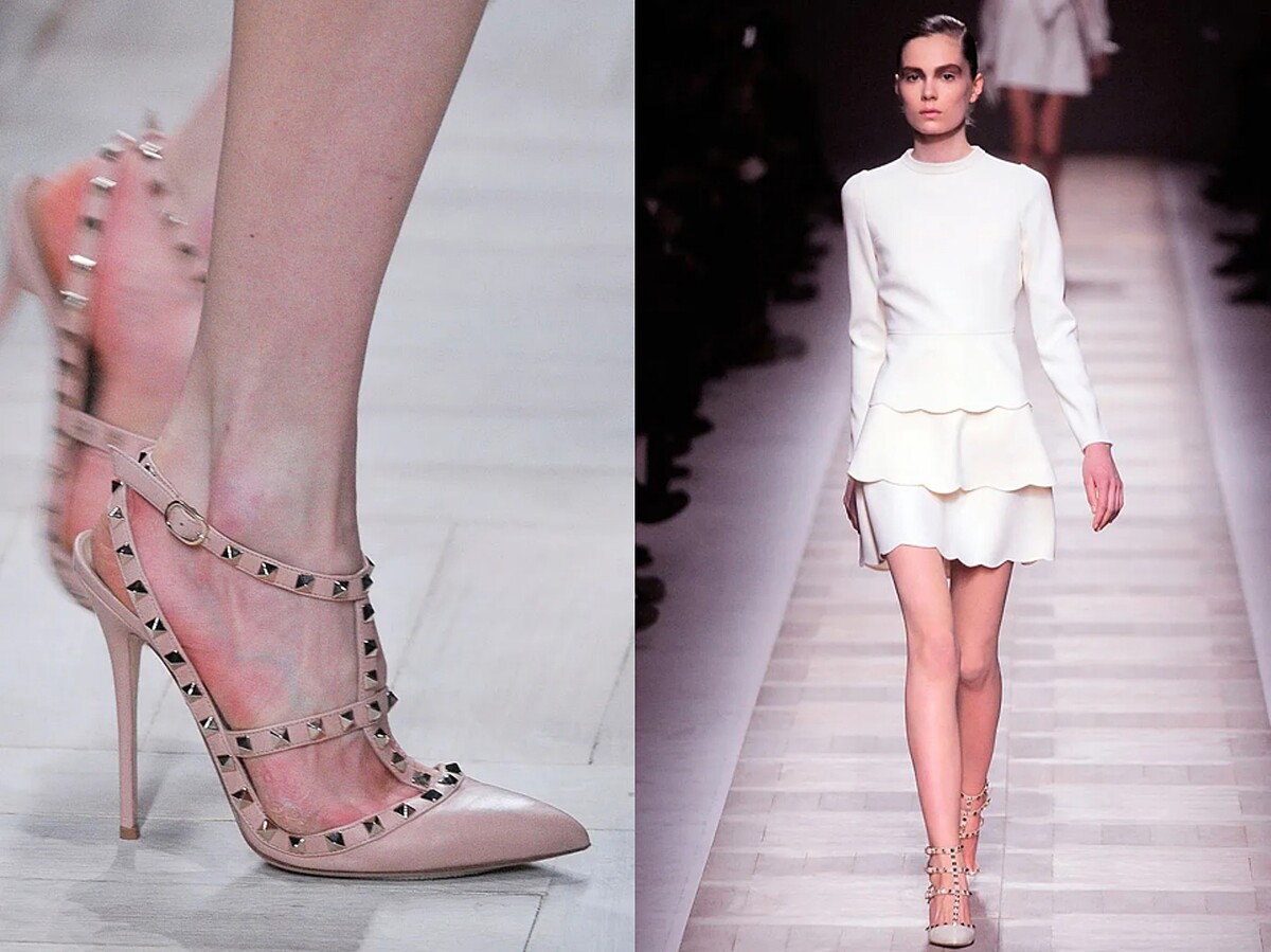 2010年巴黎時裝周上,VALENTINO傳奇設計師雙人組Pierpaolo Piccioli和Maria Grazia Chiuri推出史上第一雙ROCKSTUD高跟鞋,這也是「鉚釘」這個元素首度登上時裝周殿堂。突破當時一眾高訂品牌優雅柔和的風格,這雙鉚釘高跟鞋顯得既大膽又時髦—中性前衛、卻又不失性感優雅的衝突魅力,瞬間擄獲所有時尚人士的芳心。至此,由VALENTINO開啟的鉚釘狂潮開始席捲時尚圈,鉚釘高跟鞋更創下年年售罄的時尚神話。無論是紅毯訂裝照或是街拍生圖,也總能看到女星人腳一雙鉚釘鞋,就連名媛始祖Paris Hilton都將它稱為「最值得投資的精品高跟鞋」!