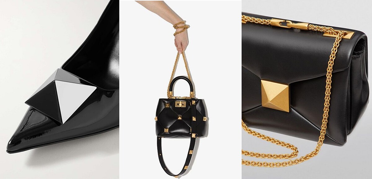 像Chanel的山茶花、LV monogram的四角星圖騰,VALENTINO ROCKSTUD儼然已成為品牌最具代表性的符碼。與龐克搖滾的尖刺型鉚釘不同,VALENTINO以古羅馬金字塔方正平衡的美學為靈感,設計出這款十字方形、古典大器的全新鉚釘—揉合街頭龐克與高訂奢感,完美詮釋VALENTINO高調不羈、熱情叛逆的時尚美學。