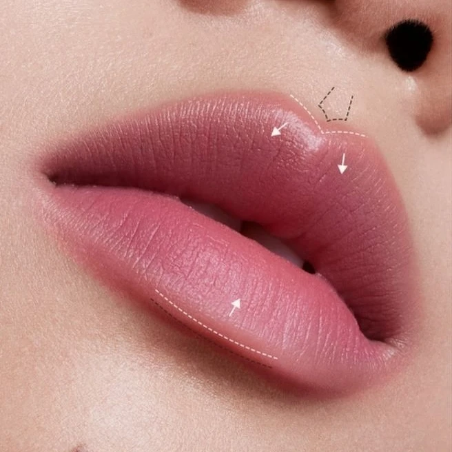質地能自然模糊唇線,柔和修飾唇型。上唇後會形成鎖色薄膜,讓唇型更立體飽滿。