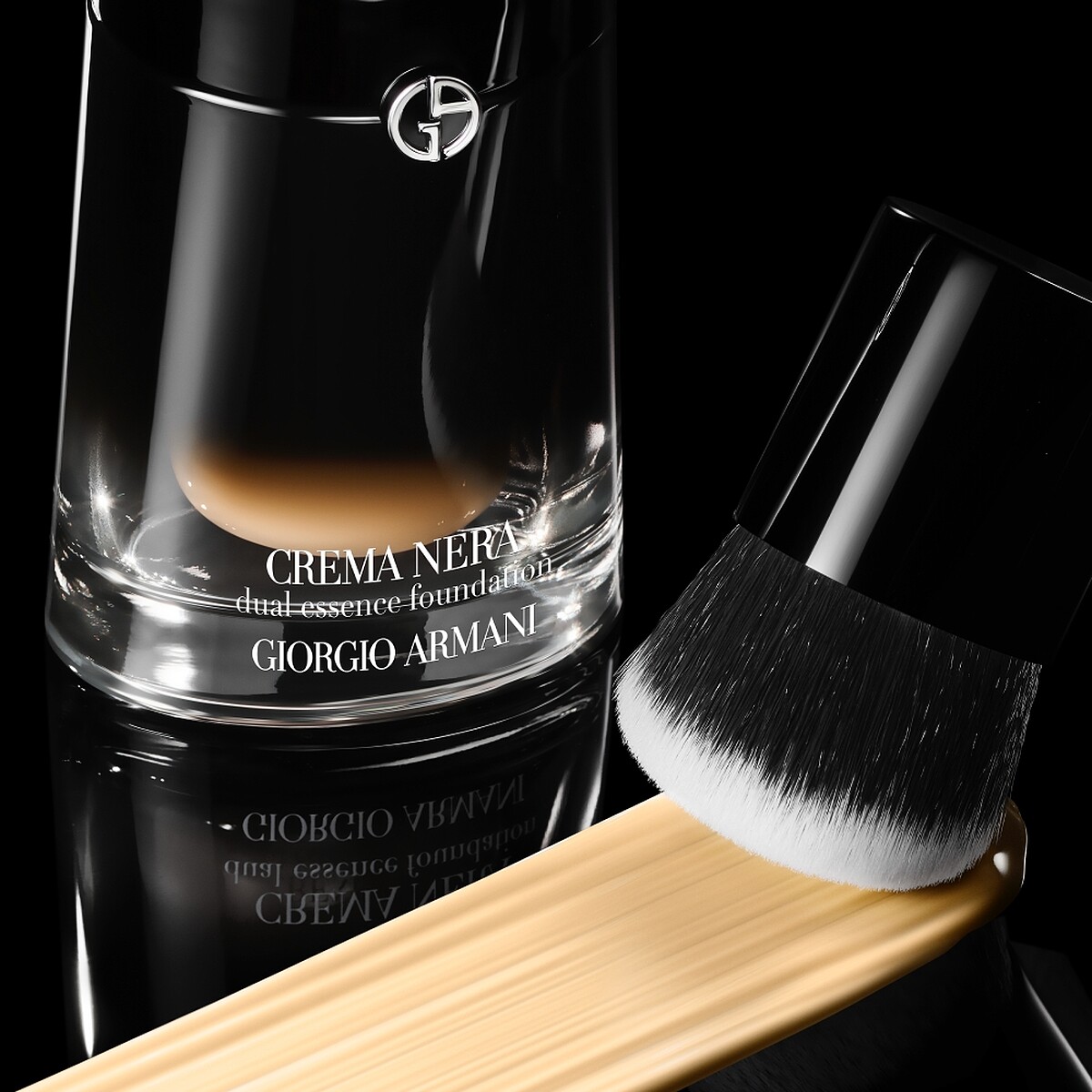(Armani beauty亞曼尼黑曜岩奢光精萃與精準底妝刷情境圖。)
