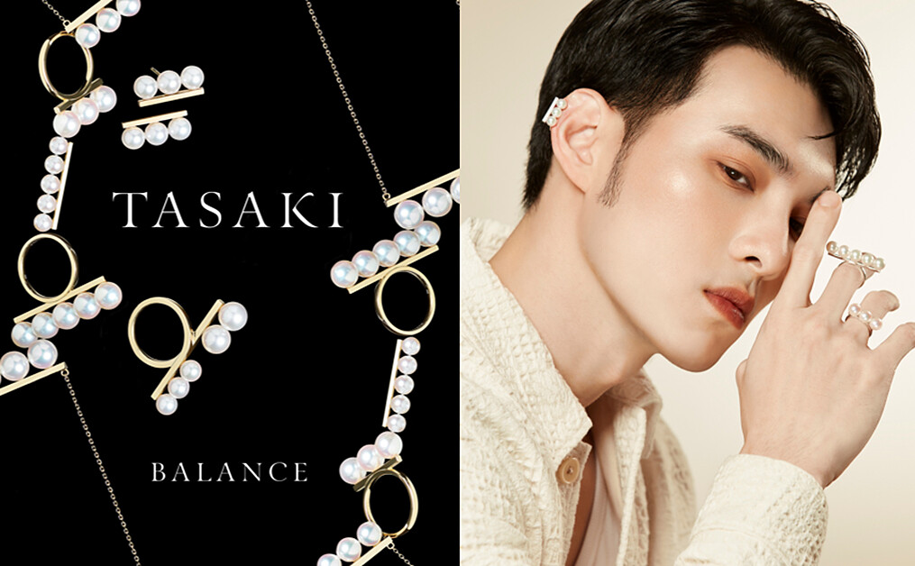 「精緻優雅妝容」靈感則是取自TASAKI最具代表性的經典「BALANCE」系列,此系列以創新的設計將珍珠完美地排列於平衡桿上,徹底呈現出奢華別緻、和諧優雅的氣質。完美呼應偉晉細膩雅致的大地色系眼彩、如珍珠光芒柔和的顴骨腮紅,以及自帶絕美珠光的迷人唇彩,最後再搭配別出心裁的平衡木「BALANCE」耳環、戒指,創造出充滿性格又不失韻味的奢感潮妝。