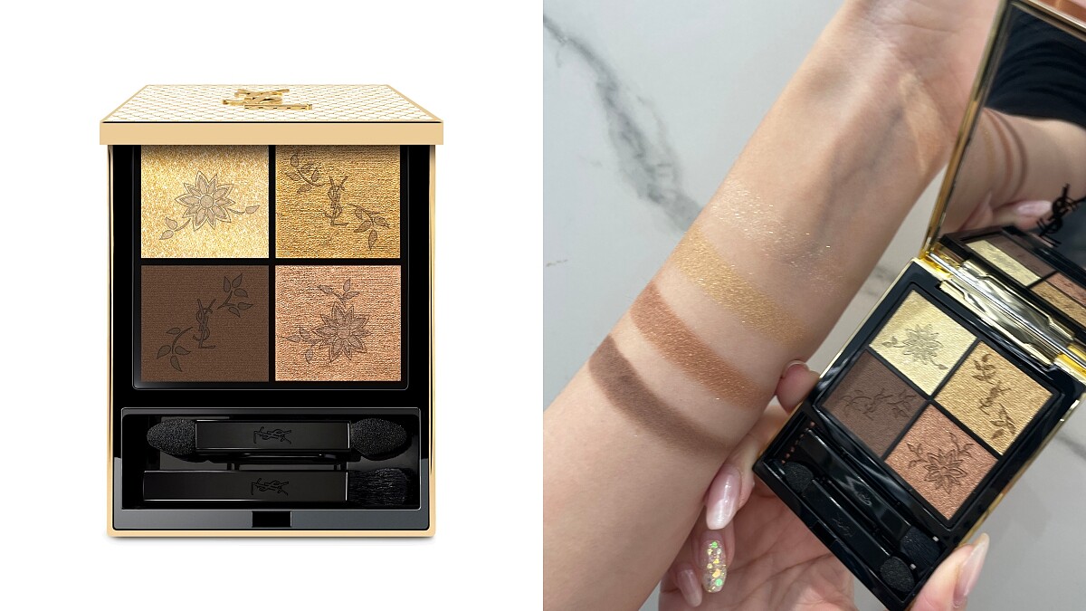 打開佈滿金奢蕾絲的雪白漆面外盒,#024以實用的金銅大地色系為主角,細 閃深淺膚色、粉膚金與棕咖四色堆疊出眼神輪廓,演譯淡顏妝感或派對華麗妝感都沒問題。