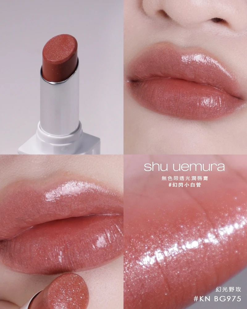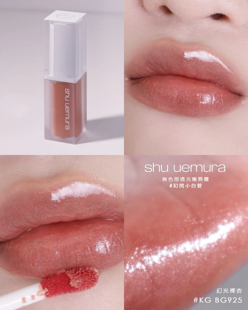 獨特白色膏體一抹透明水光閃映,淡透清亮細閃質地,可單擦或疊擦打造立體嘟唇,宛如嘴唇的Top Coat。