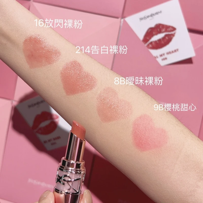 YSL情挑誘光嫩唇凍一共推出10款色號,以低飽和色選搭配閃耀光澤。包括:#1迷幻銀河、#2幸運嫩粉、#3溫柔薔薇、#4純愛蜜糖、#5加州陽光、#6星塵奶棕、#7巴黎草莓、#8冰晶葡萄、#9放閃櫻桃、#44赤裸晨曦。