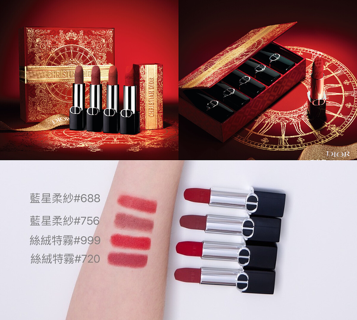 最後驚喜彩蛋,是DIOR人氣爆棚的藍星唇膏推出新春限量版!全新「柔紗霧面」質地新春搶先上市,一抹就有朦朧霧光~實現人間最美無邊界暈染唇妝!#688玫瑰豆沙、#756玫瑰紅棕,充滿曖昧氣氛的玫瑰色調,一眼就讓人怦然心動!官網獨家推出的「藍星唇膏珍藏組」一次收齊絲絨特霧五款實用色選 #188 豆沙裸棕、#217 奶咖玫瑰、#228 烏龍紅棕、#720 豆沙紅棕,和#999 經典正紅,並以義大利藝術家Pietro Ruffo設計的新春高訂禮盒盛裝,象徵鴻運的正紅x藝術感繪金圖騰,送禮或自用都為你召喚新年好運氣!