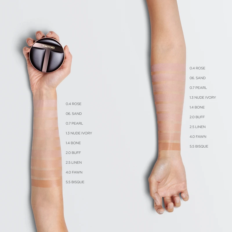 TOM FORD立體光影柔霧氣墊粉餅9色手部試色。