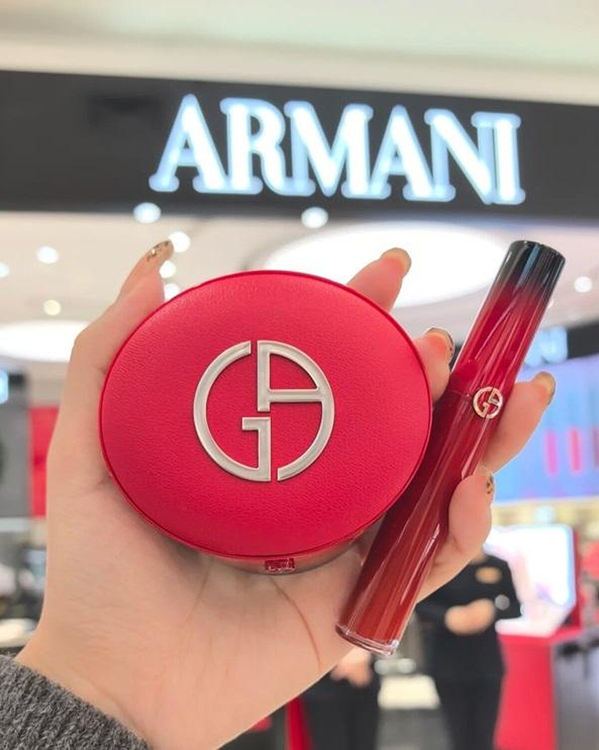 愛美女性人手一個#紅氣墊,其無瑕美肌力也不輸給外型的高顏值!氣墊內含有獨家「持色無瑕精華」與「複合保濕精萃」,運用丹荔萃取精華及玻尿酸等保濕成分,將水潤底妝牢牢地扒在肌膚上,搭配超細膩粉體,遮瑕效果就能更貼膚修飾斑點、毛孔等瑕疵,輕薄又通透的妝感超級自然;還能像套濾鏡般18小時持續散發柔霧絲絨光,搭配再升級的「高校控油科技」,能有效吸油長時間抵禦肌膚出油,不擔心脫妝、融妝困擾,幫我們一整天Hold住最美妝效,輕鬆拍出讓姊妹問爆的無瑕高級顏!即日起至2/16凡消費滿$5,000並含任一25周年限定商品,可享明星品【超持妝絲絨水慕斯粉底】正貨一瓶(色號依現場實物為主)。任兩件唇彩即可享【亞曼尼訂製彩妝鏡】乙個。 *活動互不累贈,數量有限贈完為止