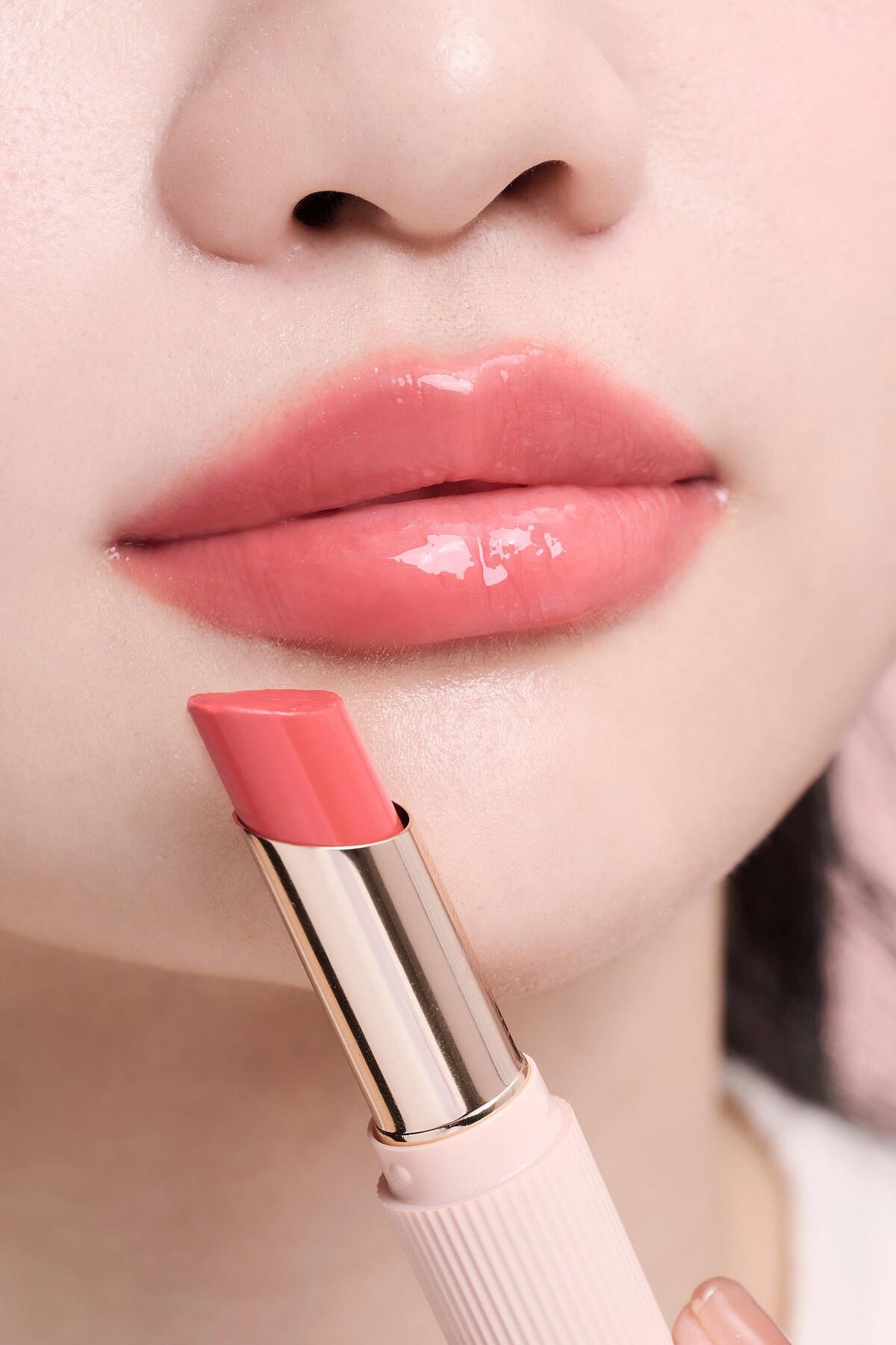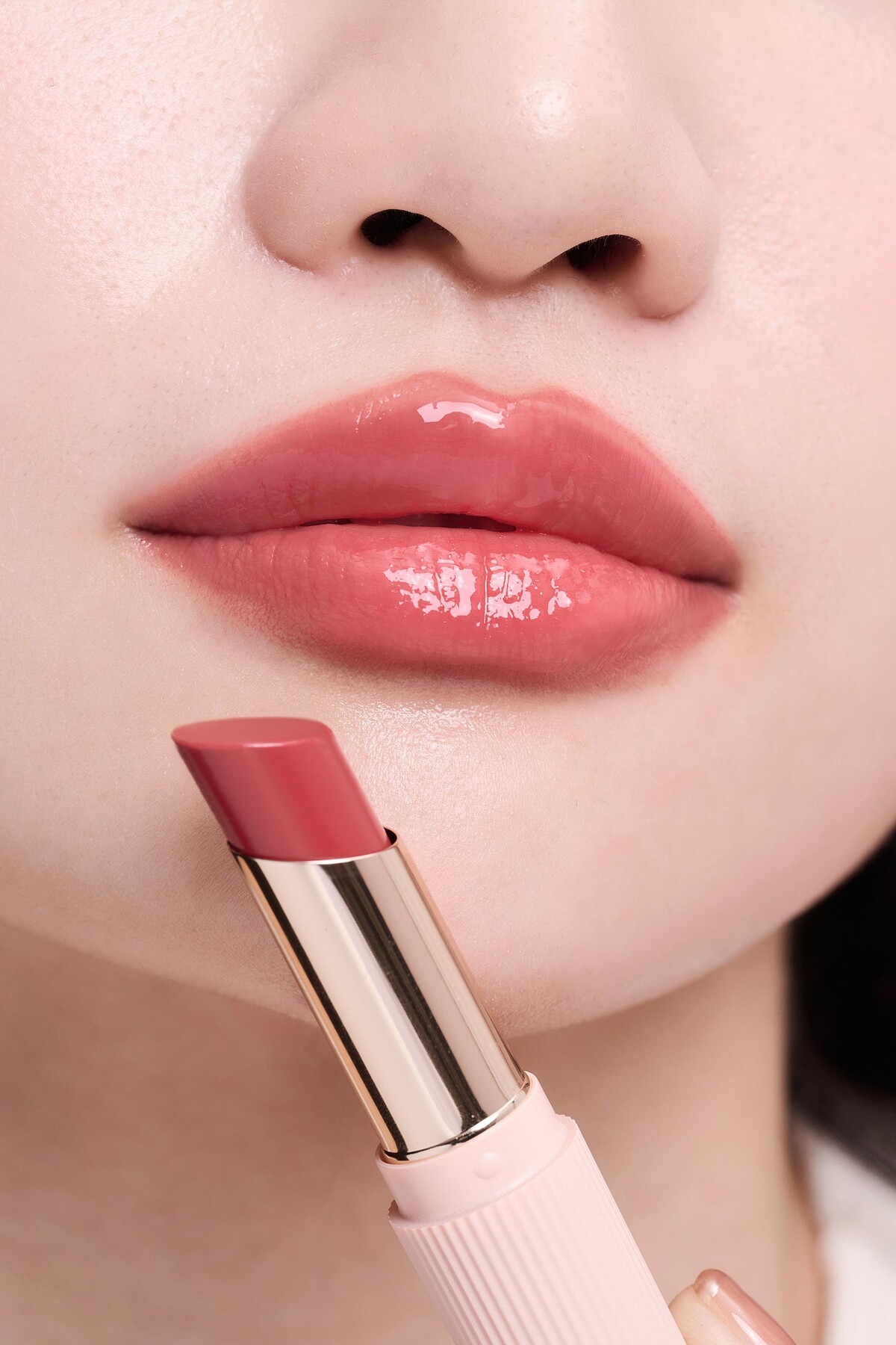 顛覆潤色唇膏假潤乾巴巴印象, #小粉管 顯色持久超爆水,觸膚即化的柔滑膏體富含酪梨果油、莓果精萃,擦上瞬間保濕水潤度+84%,長達8小時持續保濕滋潤,還能柔嫩撫紋!M編真心讚嘆它透亮的光澤,不是油光是水光,乾唇一抹立即擁有果凍般的Q軟滑嫩~