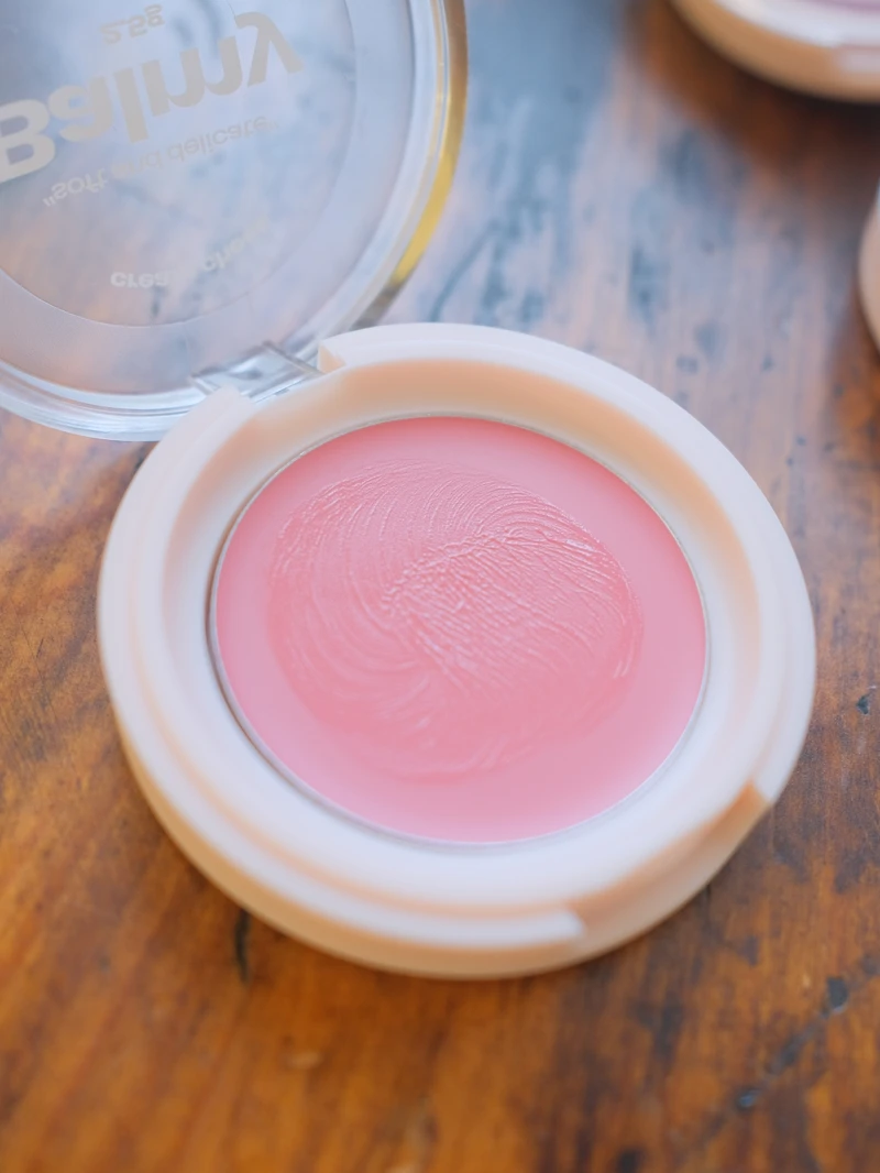 比起明顯的偏光,近年頰彩開始流行更輕透自然,帶點濕潤質地的水光氛圍,像是自然聚光的透亮妝感,從伸展台到idol皆然!想要打造水光感,頰彩質地要夠細膩、不能厚重,粉狀產品也能達到這樣的效果,但是霜狀、液狀會更好上手。這也是為什麼不少品牌選擇在2025推出霜狀或液態的腮紅產品。
