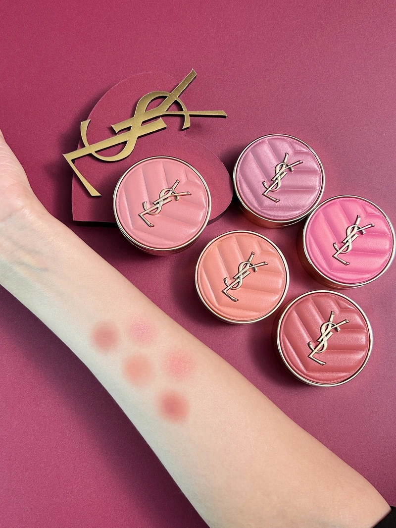 這款腮紅靈感源自於2023年末聖羅蘭在日本舉辦的煙火大秀,這次的腮紅就是想打造宛如煙火暈染紅暈感。搭配源自高級時裝設計的馬特拉斯V型凸紋皮,每款皮革外觀色澤皆都和內蕊腮紅色號相符,精緻滿分。