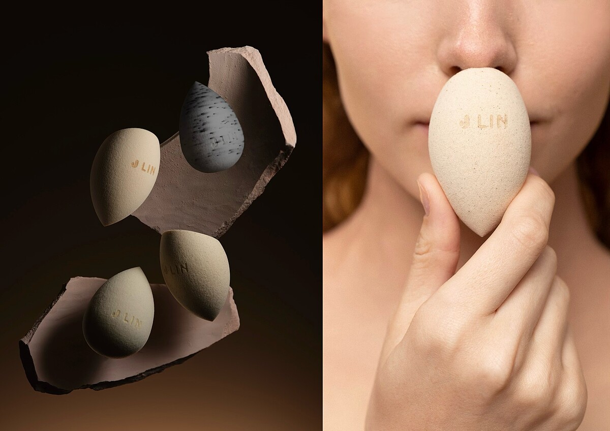 J-LIN的「植物降敏系列美妝蛋」,利用植物萃取成分替換製作美妝蛋時需使用到的化學物質,因此類型物質較容易引起敏感肌過敏反應,四款美妝蛋分別為「椰殼、茶籽、玫瑰、桂花」,以每個品項名稱當中的植物,作為交換化學成分的原料,利用天然植物萃取成分的特性,提升美妝蛋觸感較止滑,在利用液態底妝用品時能在輕輕拍打時產生高服貼效果。凡事要求精準完美的創意執行長Juila先買回當時市面上所有的美妝蛋,「每種我都買兩顆,一顆剪開、一顆保留,再和各大廠商們一起研究出無懈可擊的美妝蛋。」什麼是「優質美妝蛋」呢?Julia分析:「必須要吸粉力低、著粉力高,這樣才能用最少量的粉底液發揮最扎實的妝感。」此外,相較於許多品牌使用乳膠製作美妝蛋,J-LIN用的是低敏、來自美國杜邦與德國廠合作製作的產品,並具備抗菌的效果,給皮膚無負擔、安全的上妝體驗。