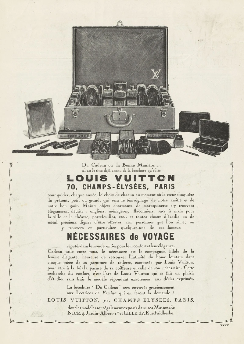路易威登更早在1920年代設計出奢華的粉盒、粉刷和鏡子。在路易威登的品牌資料庫裡還保存的兩件佳作,其中一個是為女高音歌唱家瑪爾特.舍納爾Marthe Chenal訂製的Le Milano粉盒。