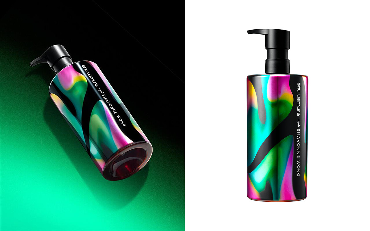 此外,Shavonne Wong也與丹麥頂級影音品牌 Bang & Olufsen 進行合作,為她的虛擬藝術創作開拓了更多可能性。從這些經歷都可以看出,Shavonne Wong 的實力和才華不容小覷,是當今藝術圈值得關注的潛力新秀!而這次她和植村秀所推出的聯名彩妝系列,同樣打破常規、顛覆審美,用無限的想像力重塑虛擬與現實,此系列她運用了如極光般流動的波浪線條妝點著全系列包裝外觀,帶來了一場跨次元的美妝風暴!