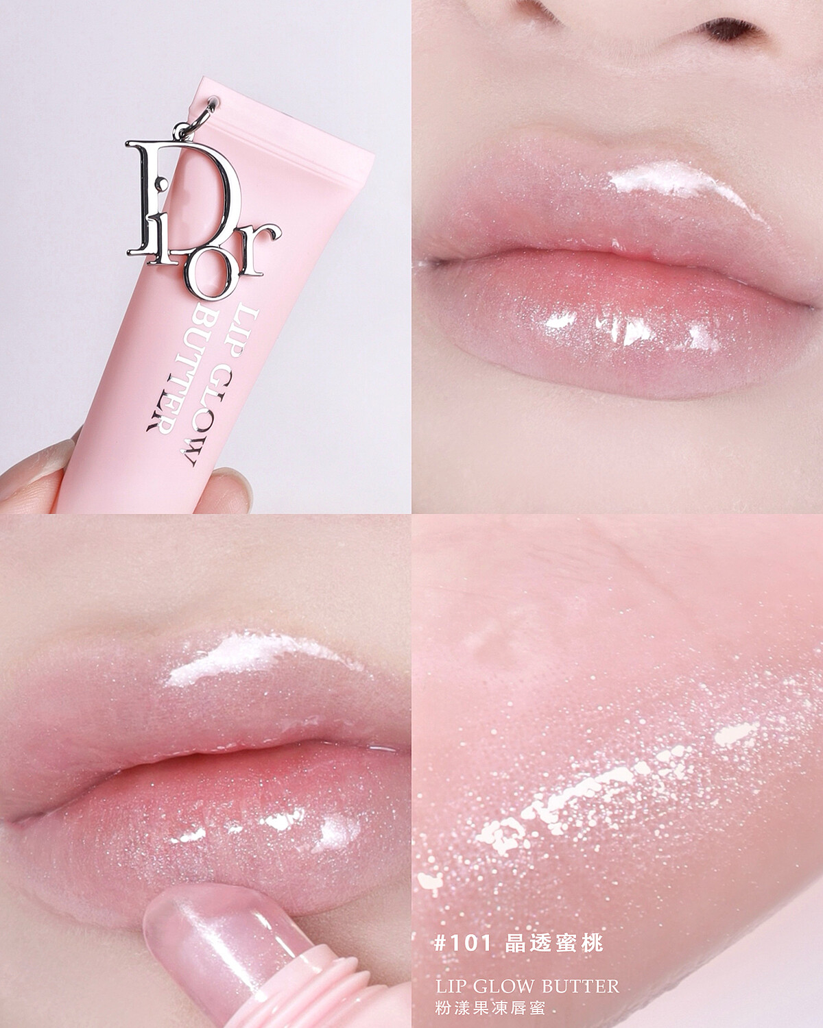 迪奧粉漾果凍唇蜜#101晶透蜜桃實擦。