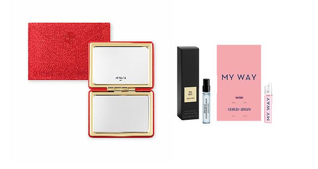 活動2. 7/1-7/10於全台亞曼尼百貨專櫃購買任2件彩妝並含「霓虹幻彩限定版唇萃」,即獲得「亞曼尼高訂美妝鏡」乙個;購買任1件唇彩,即享官網免運與「豪華下單禮贈」乙份。(內容包含PRIVE IRIS針管香2ml、MY WAY淡香精粉漾版 針管香2ml)