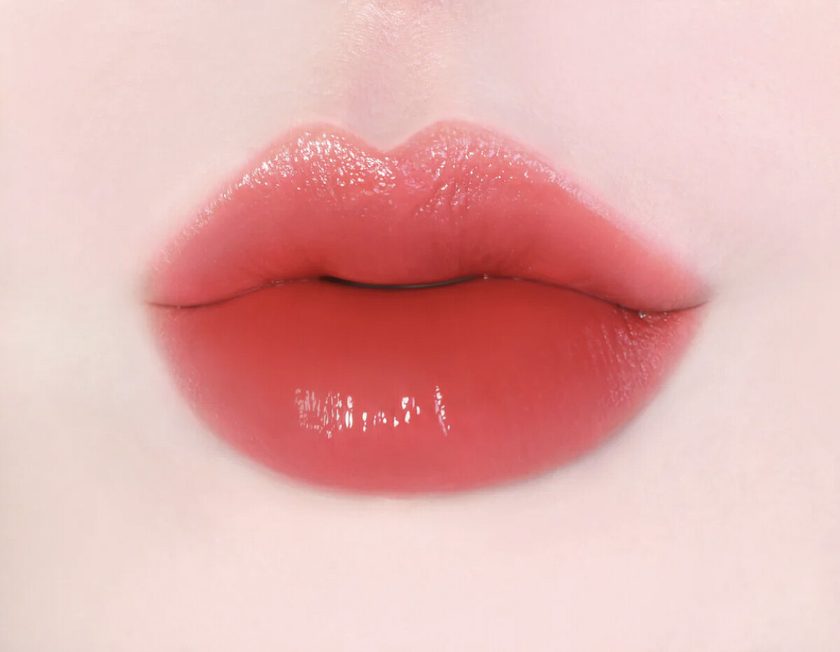 染唇露質地擁有濃郁的顯色度,同時遮色、附著力強,卻又能保有水潤的光澤感,玫瑰調的沉穩紅色系,以稍微擴唇的方式上妝甜美中帶性感!